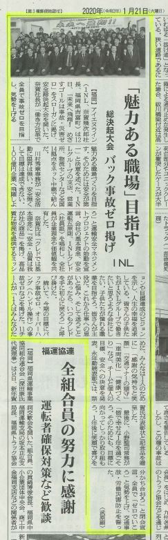 2020年を事故ゼロを目指して、気勢をあげていきます。