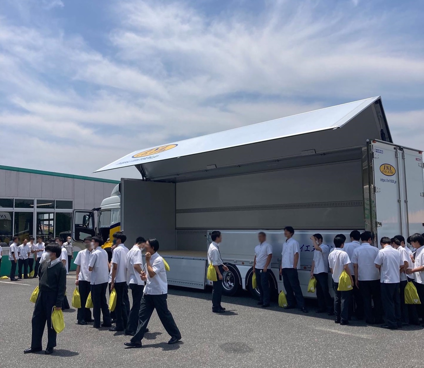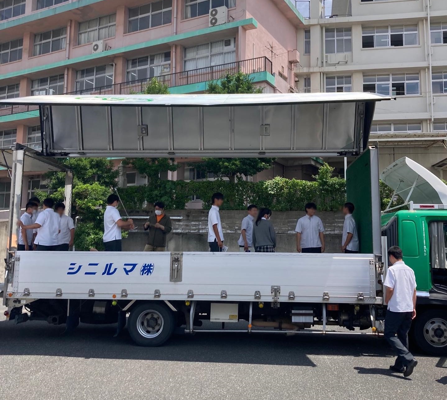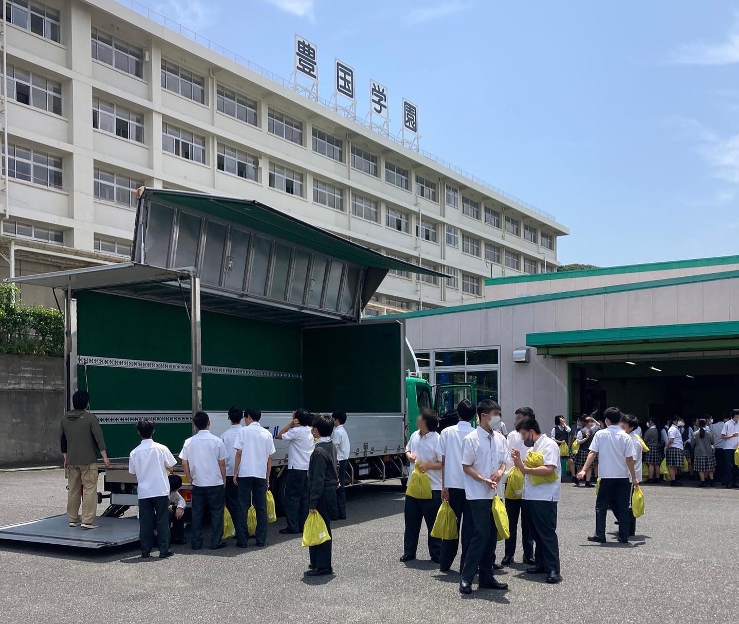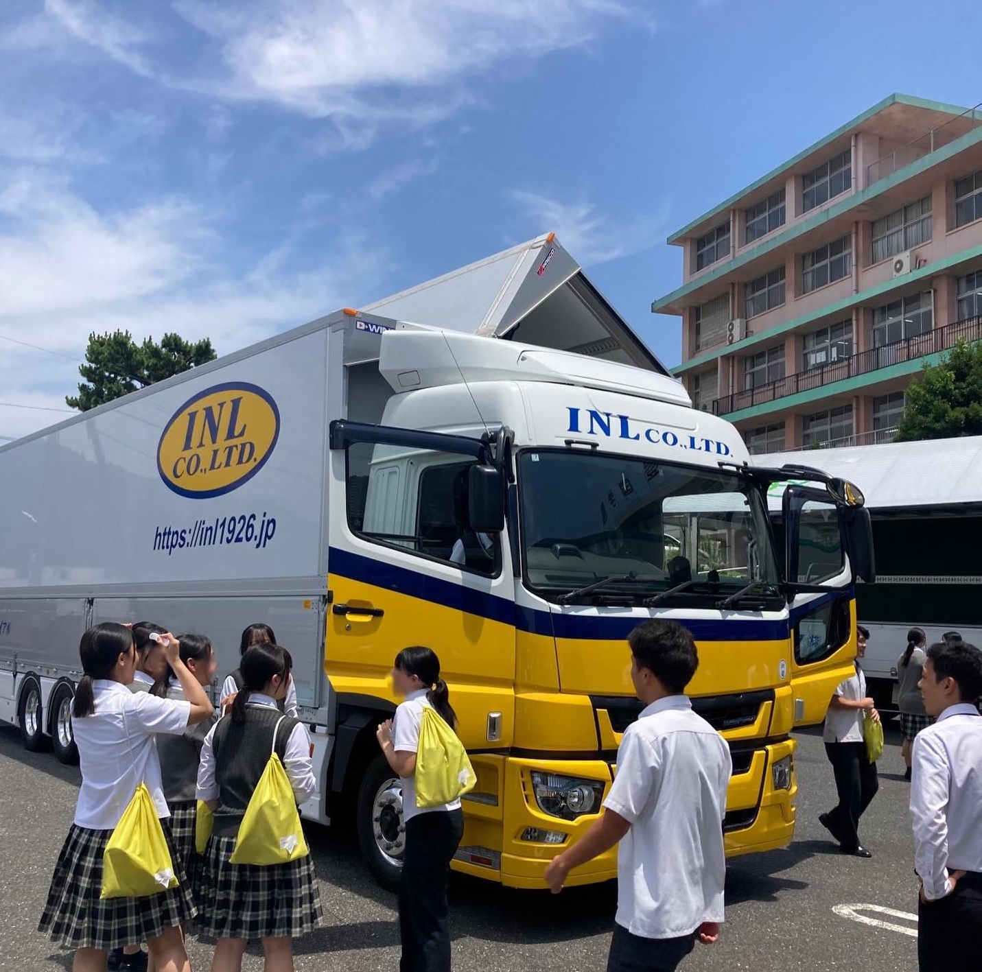 北九州市の豊国学園高校に当グループの車両を持ち込み、実際にトラックに乗ってもらい、普段出来ないような体験をしてもらいました😆