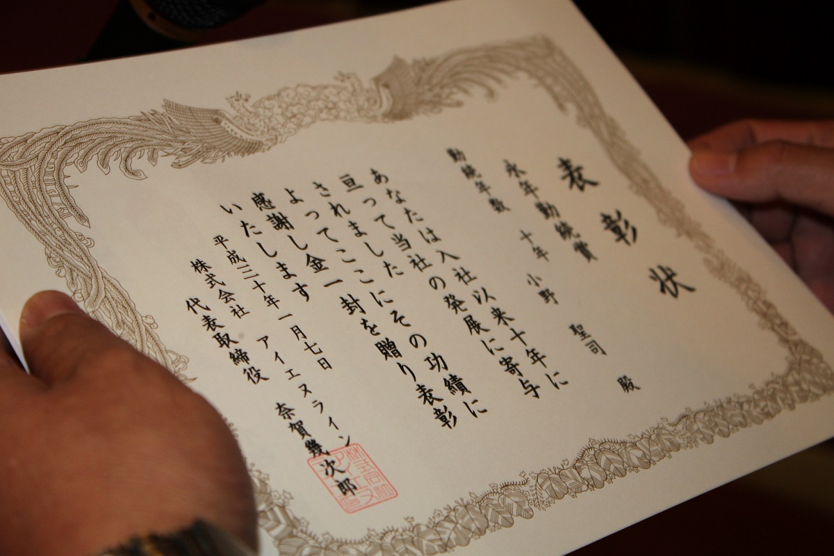 おかげ様でNも勤続10年が経ち、社長から表彰されている最中は涙がこみ上げそうになりましたが、