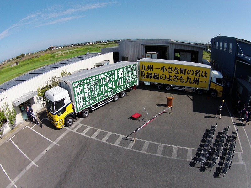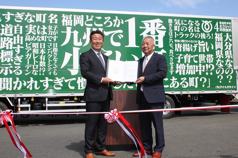 吉富町×アイエヌライン コラボ! ラッピングトラック出発式