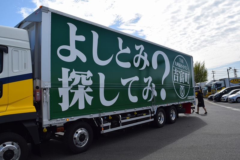 このとっても目立つトラックが、今日から全国を走り吉富町をPRします!