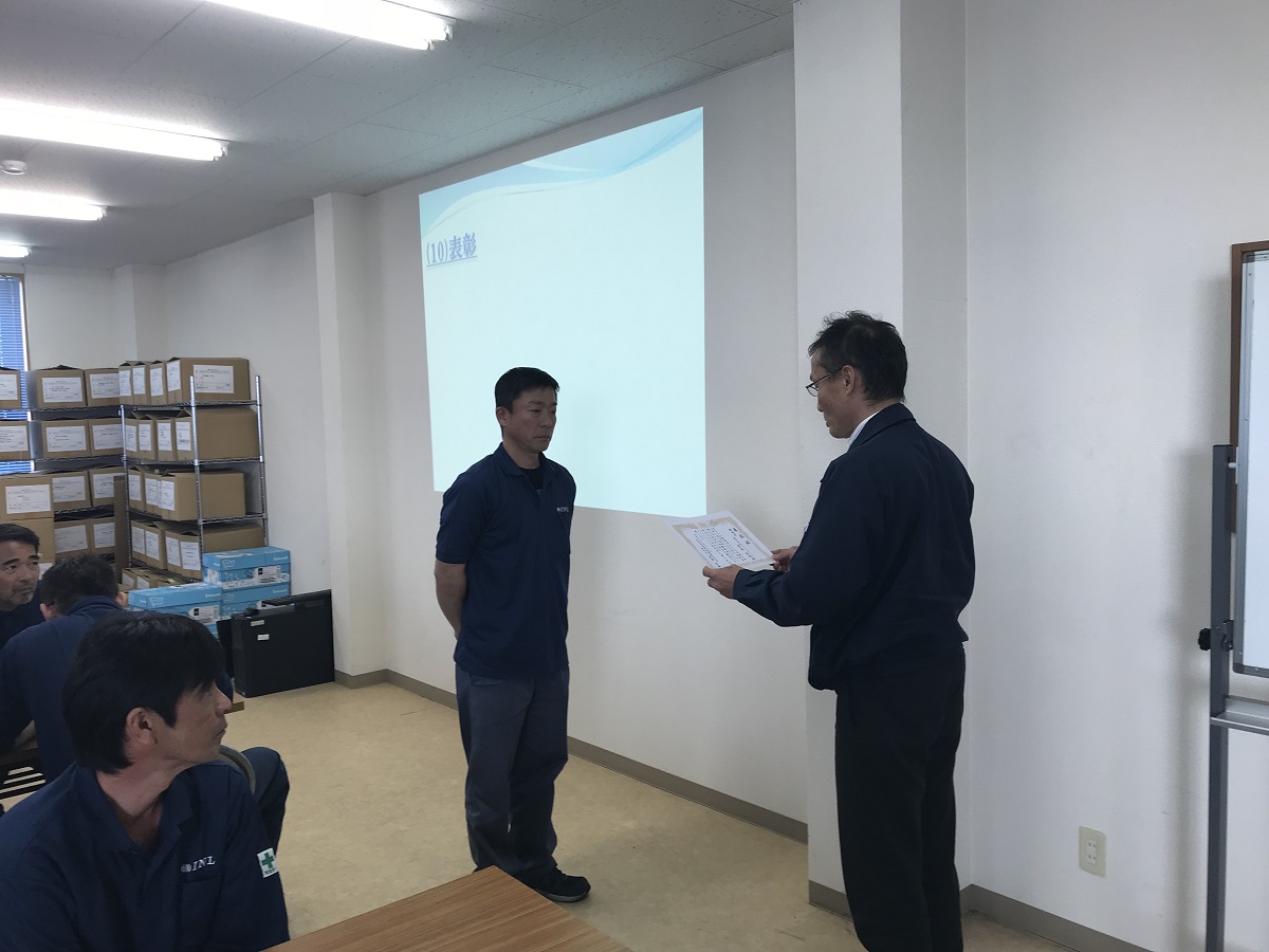 表彰式では外部評価を受けた乗務員さんの表彰とフォークリフト講習実技の優秀者表彰を行いました❗