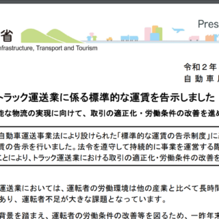 改正貨物自動車運送事業法により設けられた「標準的な運賃の告示制度」に基づき、令和2年4月24日、標準的な運賃の告示が行われました。...